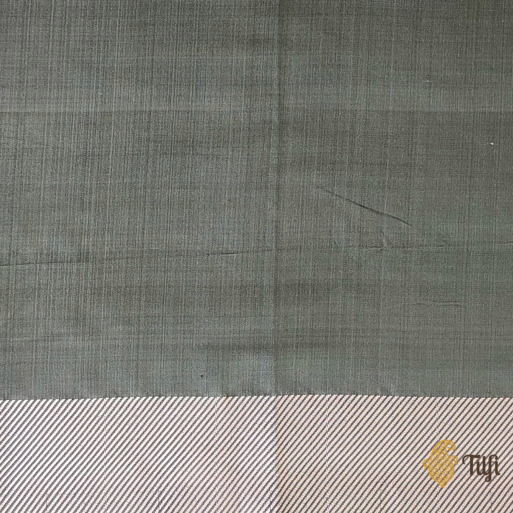 'Julia' Dark Green Pure Satin Silk Banarasi Handloom Saree