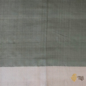 A sleek satin silk saree covered with an understated striped pattern alluding to the geometry of Art Deco. A soft and versatile drape handwoven in the fine Tanchoi technique.