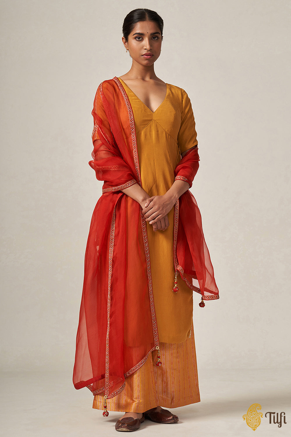 • Fabric - Pure Katan Silk Brocade Handwoven Pants, Pure Silk Suit and Pure Silk Organza Odhani