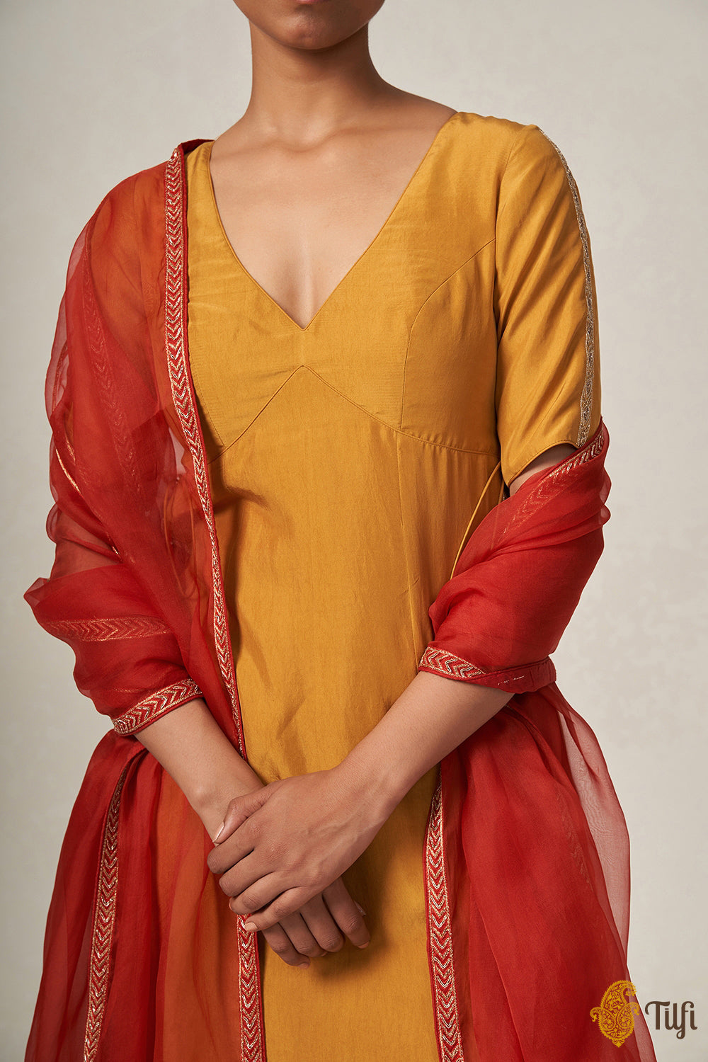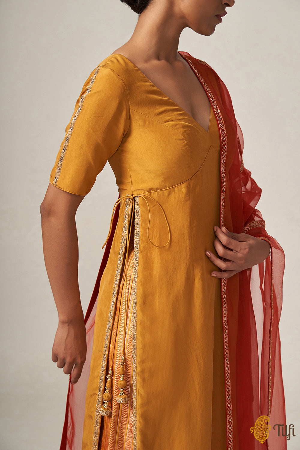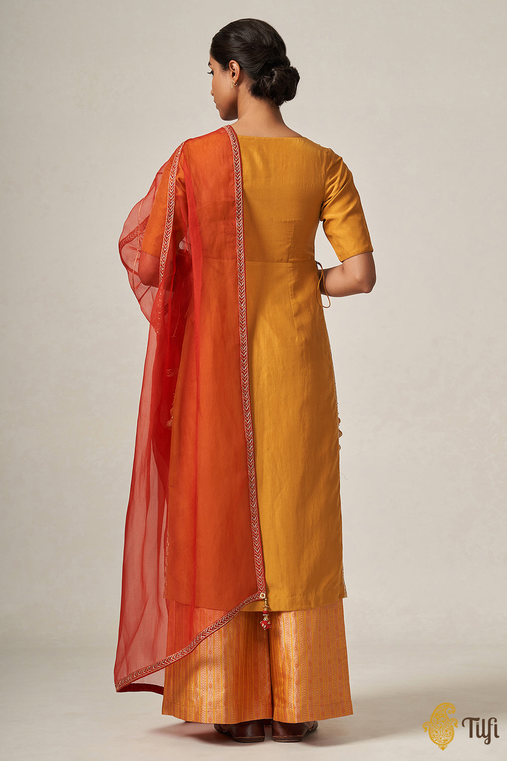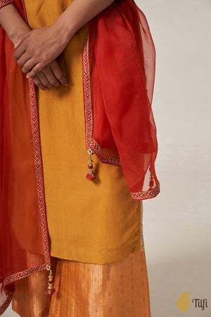 'Kaumari' Mustard Yellow Pure Handloom Silk Brocade Suit Set