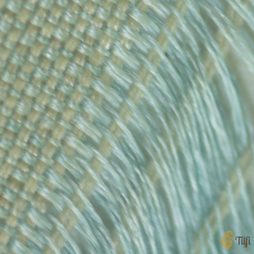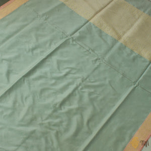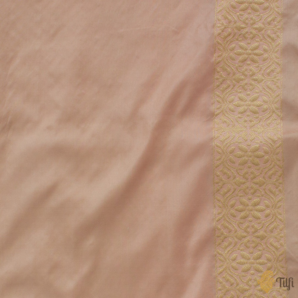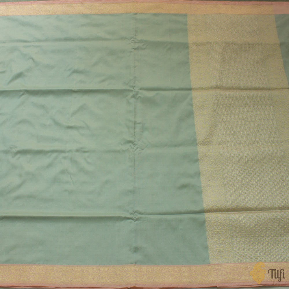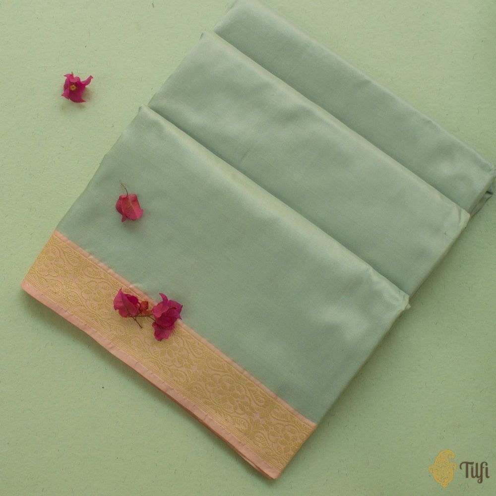 In a delicate combination of colours and adorned with charming zari motifs, this is a timeless Banarasi masterwork! Woven in the finest Kadiyal style on resplendent silk; unfussy and absolutely elegant as all classics should be.