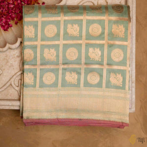 Speciality - Woven in the exquisite Banarasi style, the squared pattern and the lovely motifs make this a rare and remarkable saree.