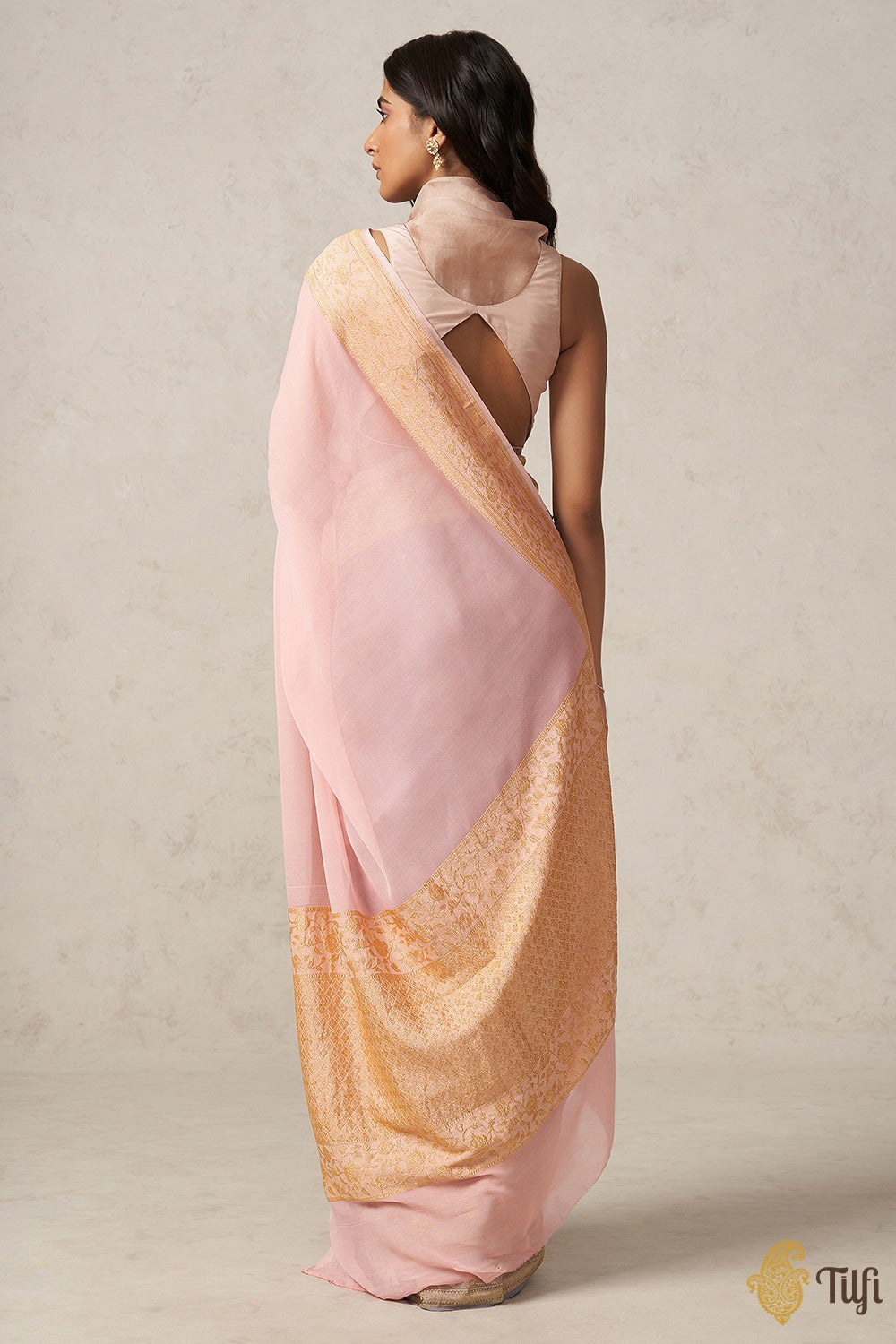 Collection note - This saree is a part of Tilfi’s Gulab Bari collection, which pays homage to the heritage Banarasi music festival of the same name. A handcrafted translation of the serene and lyrical ambiance of the roseate festival, embodied through harmonious textile artistry.