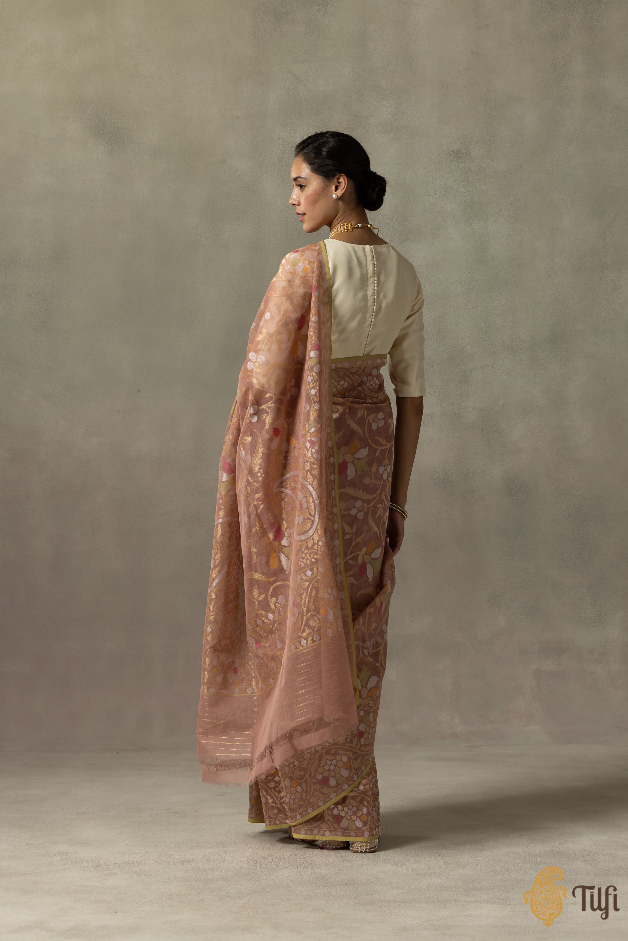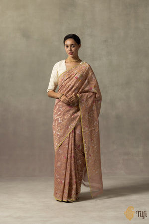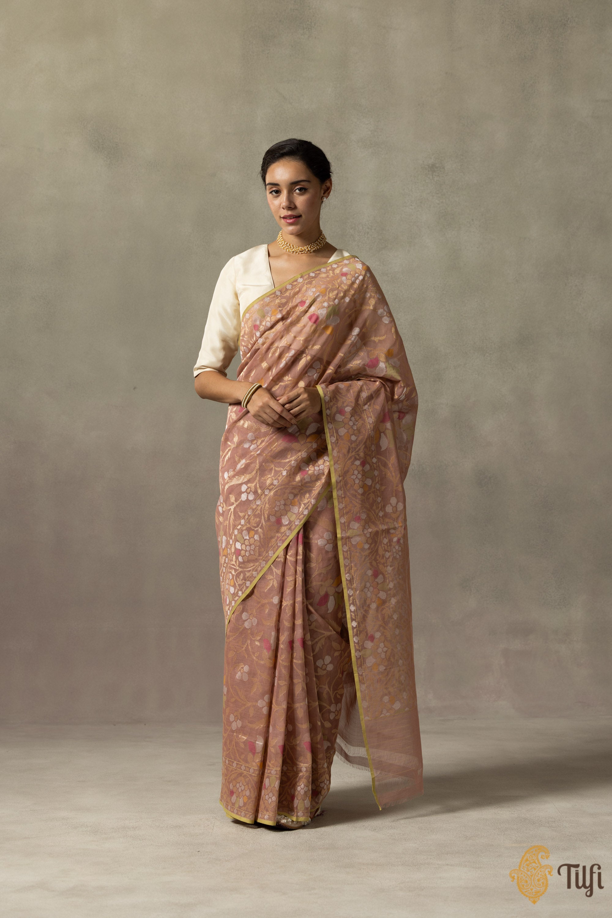Speciality - With zari threads made of real silver, this is a Banarasi gem. Its corners are adorned by koniyas of incredible detailing. Woven in the exquisite Jamdani technique with delightful Meenakari floral motifs, this is a rare saree, made especially for the discerning.