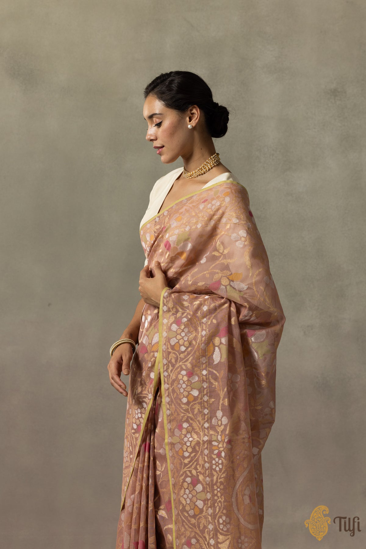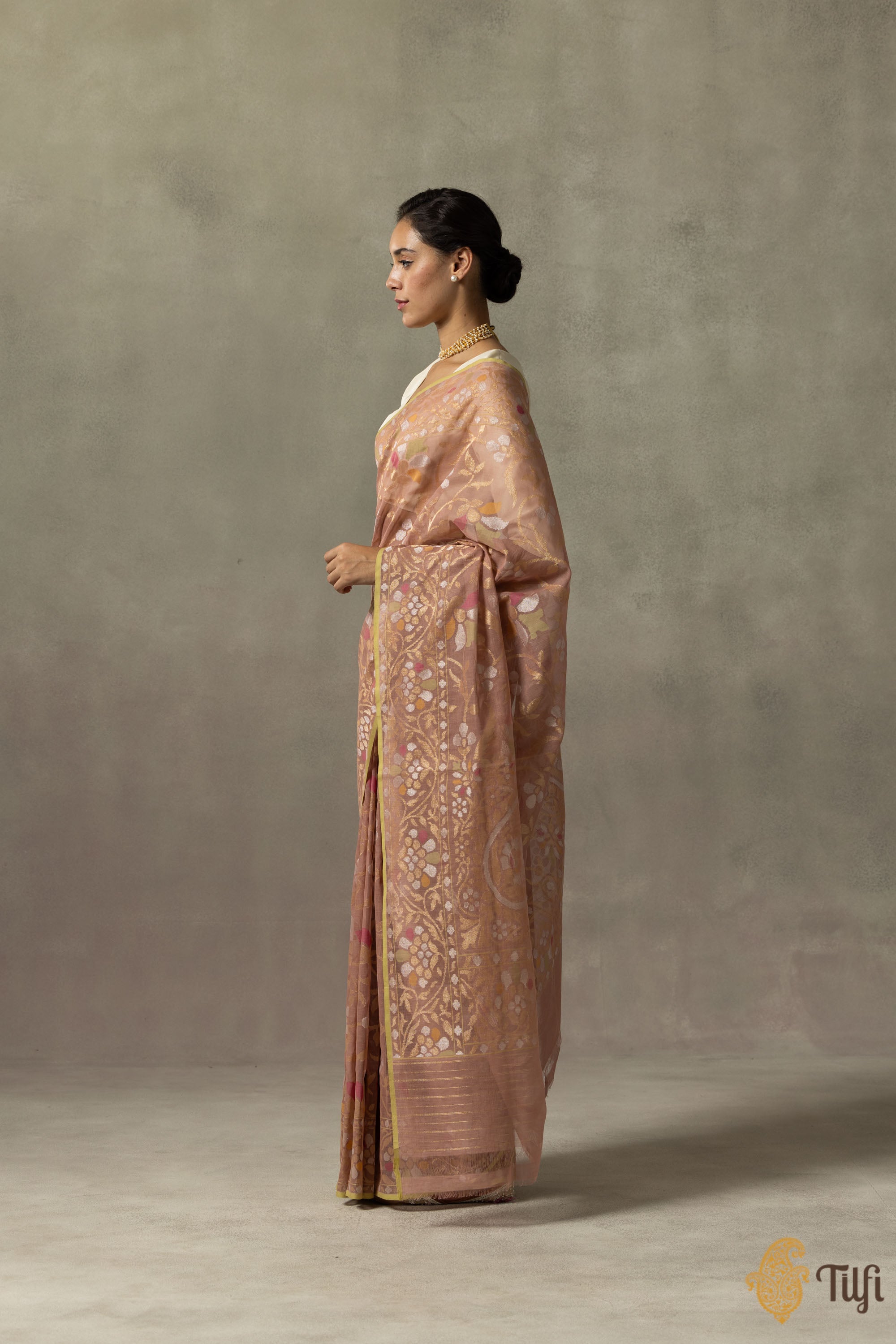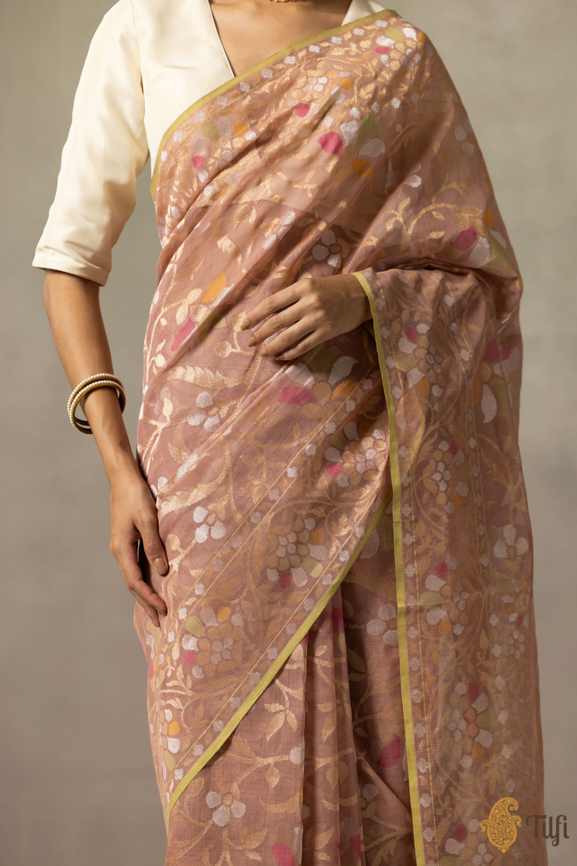Once crafted exclusively for the royalty, this is a breathtaking Jamdani saree woven with Real Silver Zari. A timeless and unadulterated Banarasi masterpiece.