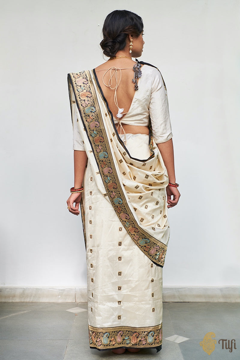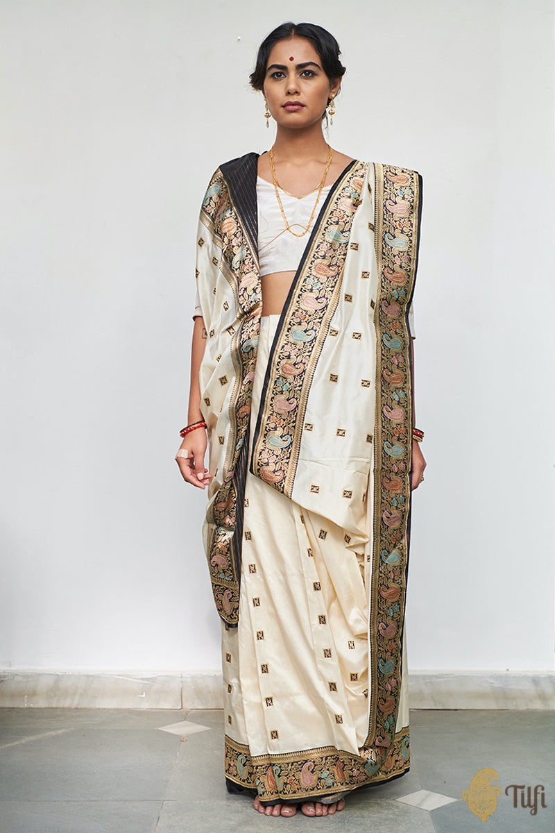 Pre-Order: 'Charulata' Off-White - Black Pure Katan Silk Banarasi Heritage Handloom Saree