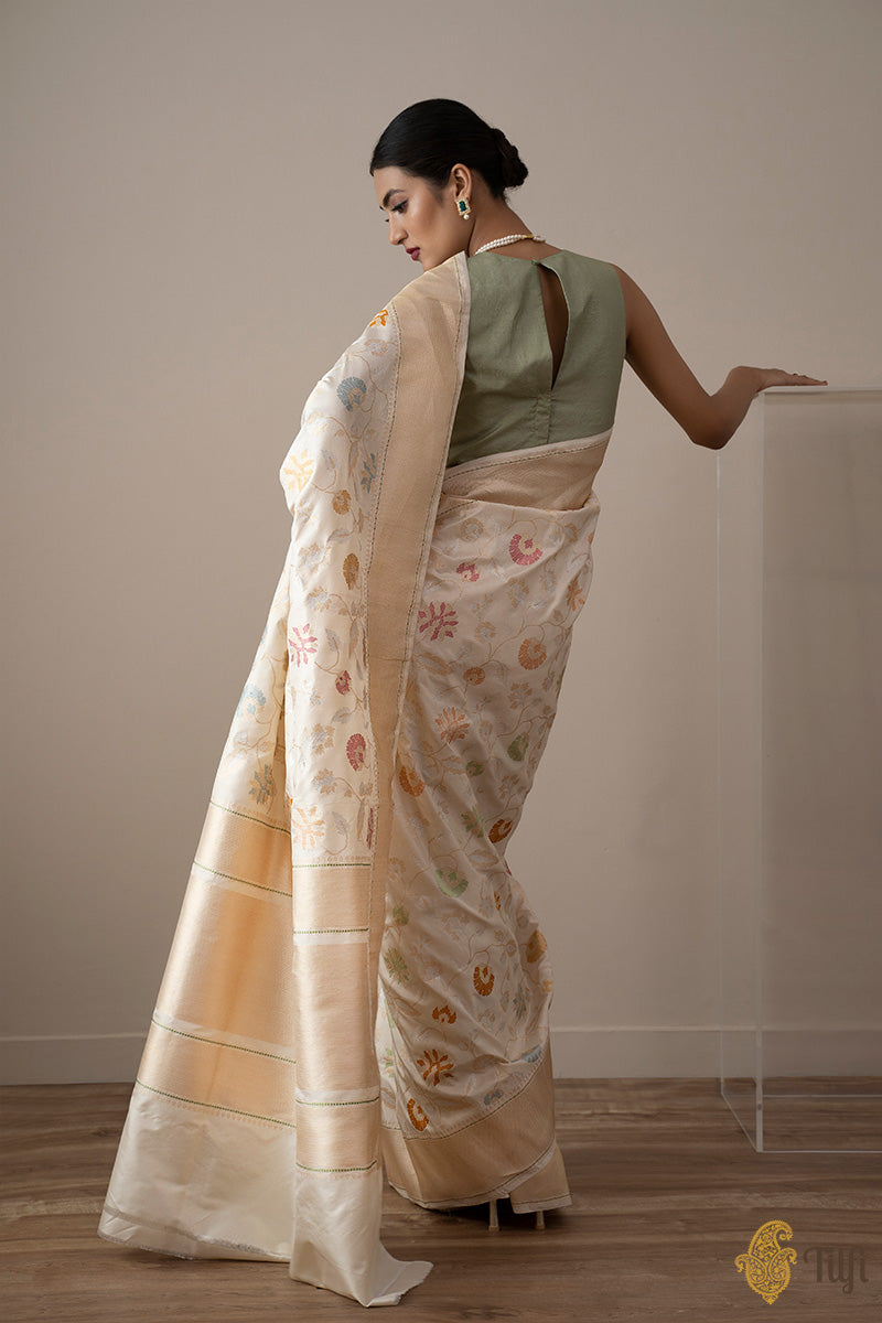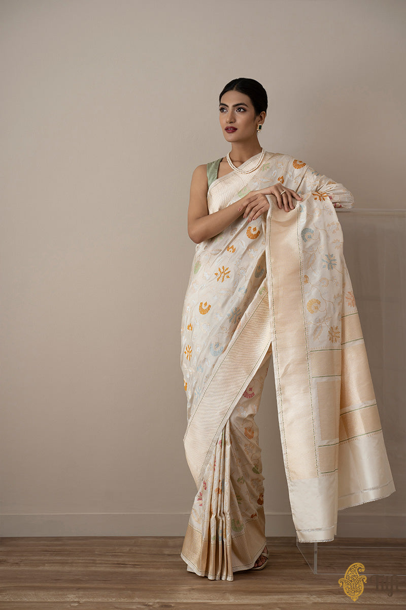 Speciality - Luxury is in the details of this handwoven masterpiece with a rich and intricate Meenakari floral jaal in subtle hues.