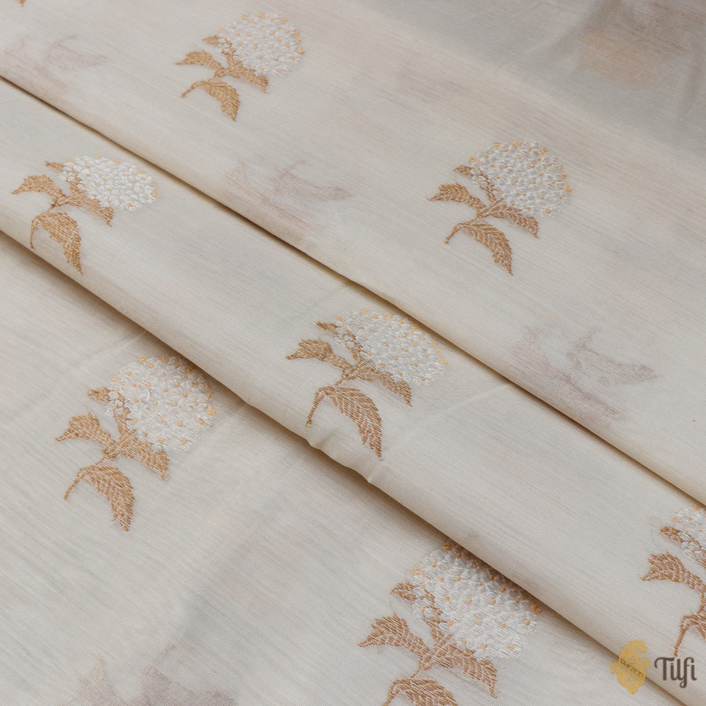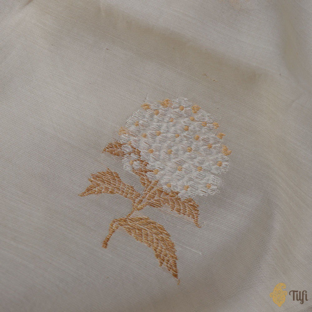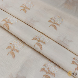 Off-White Pure Kora Silk by Cotton Banarasi Handloom Fabric
