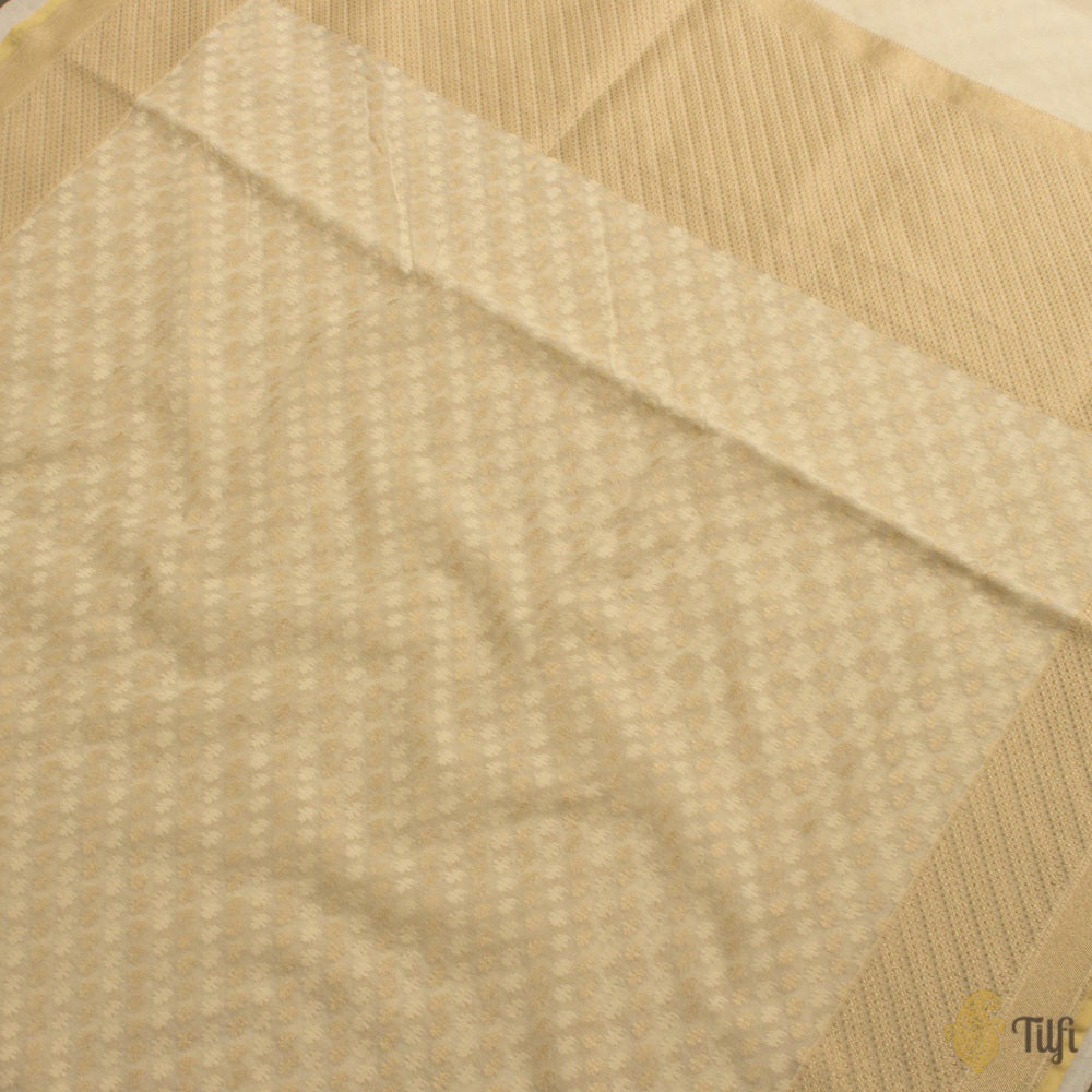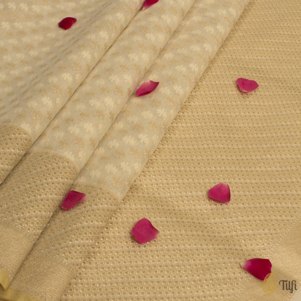 There is so much beauty in simplicity and elegance in subtlety. A lovely, light Tilfi Banarasi kora silk by cotton saree with zari and resham bootis, for days when nothing can weigh you down.