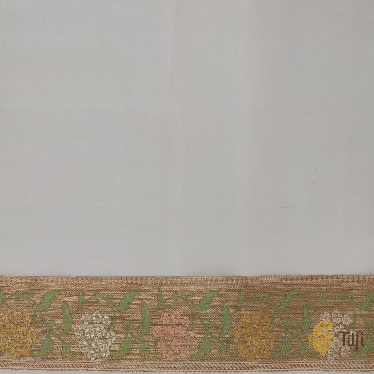 Speciality - With our collection O' October, we have introduced new motifs hitherto unfamiliar in our classic Banarasi textile vocabulary. This beautiful saree features the beautiful Hydrangea, woven in our eponymous Tilfi technique.