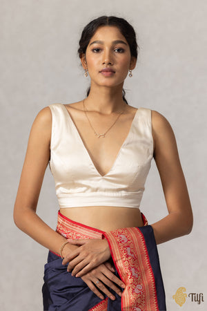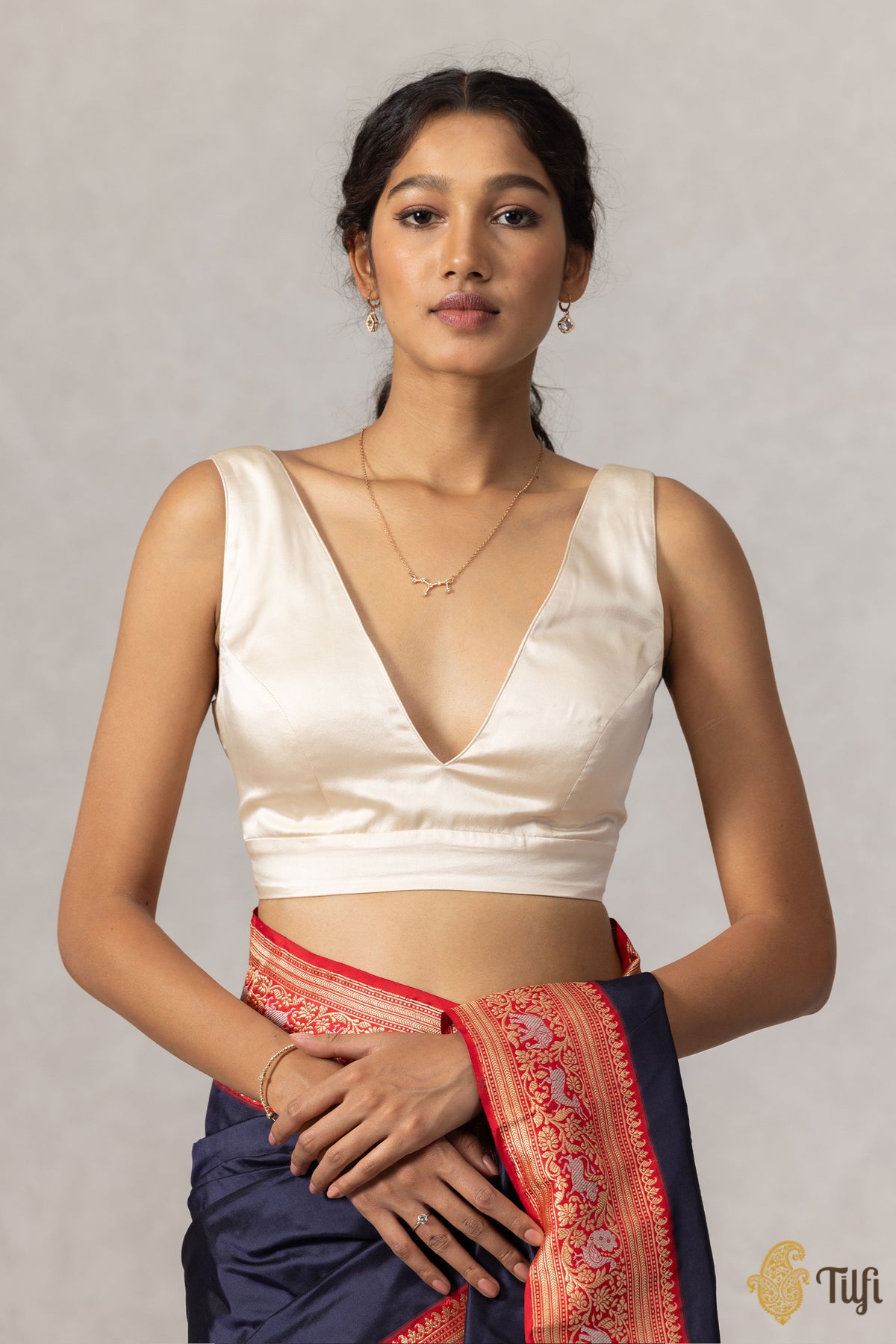 A feminine blouse with a deep, plunging neckline. It comes with an adjustable ribbon tie-up back for a beautiful accent.