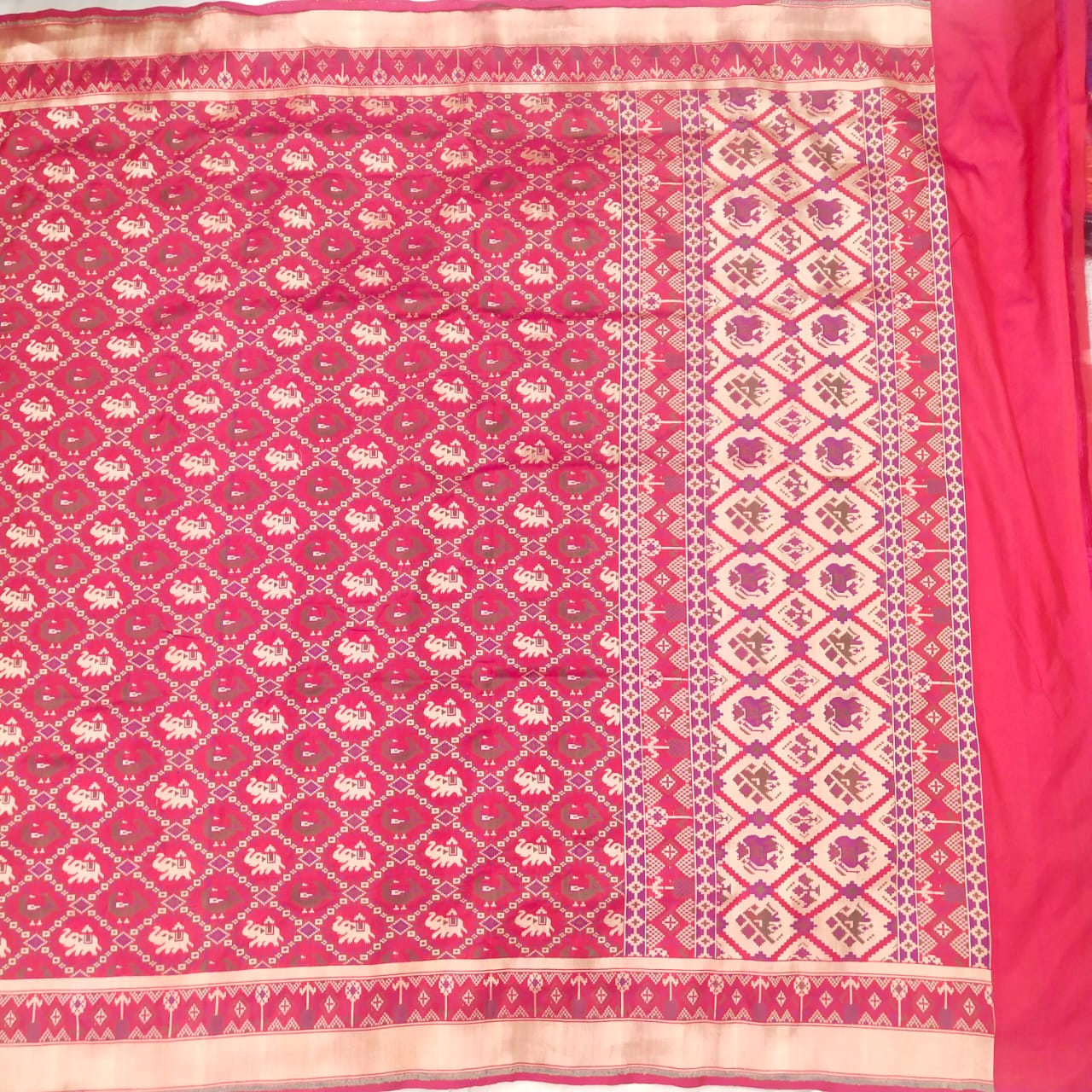 An example of Banarasi ingenuity! The handloom Banarasi Patola dupatta is a classic dedicated to the rich weaving tradition of Patan, Gujarat. A celebration of Indian textile arts.