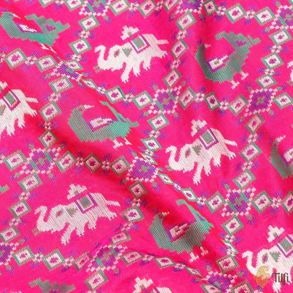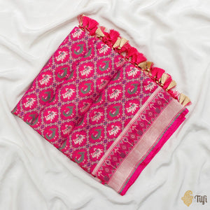 Technique - Fine Meenakari technique which involves the painstaking addition of supplementary coloured resham threads during the hand-weaving process. Unlike the original Patan Patola dupattas which are resist dyed Ikats, the Banarasi counterparts are woven using fine meenakari.