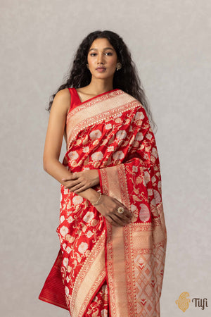 This saree is a vision... each thread proof of human artistry! An exquisite, full kadhua floral jangla, incredible in its details, handwoven on resplendent silk.