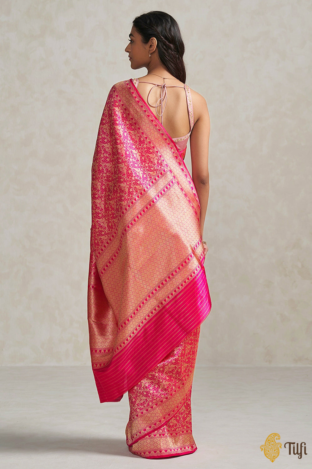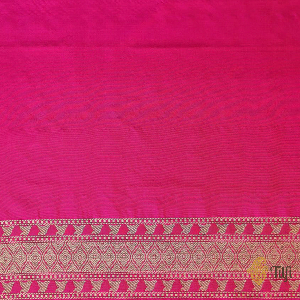 Speciality - Be mesmerised by the arresting weaves on this regal ensemble with pairs of regal bird motifs enveloped in a landscape of zari vines. A classic Shikaargah - a testament to the skill of our weavers and the wonders they are capable of.