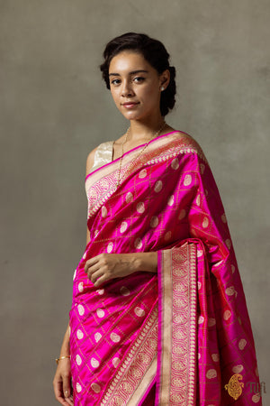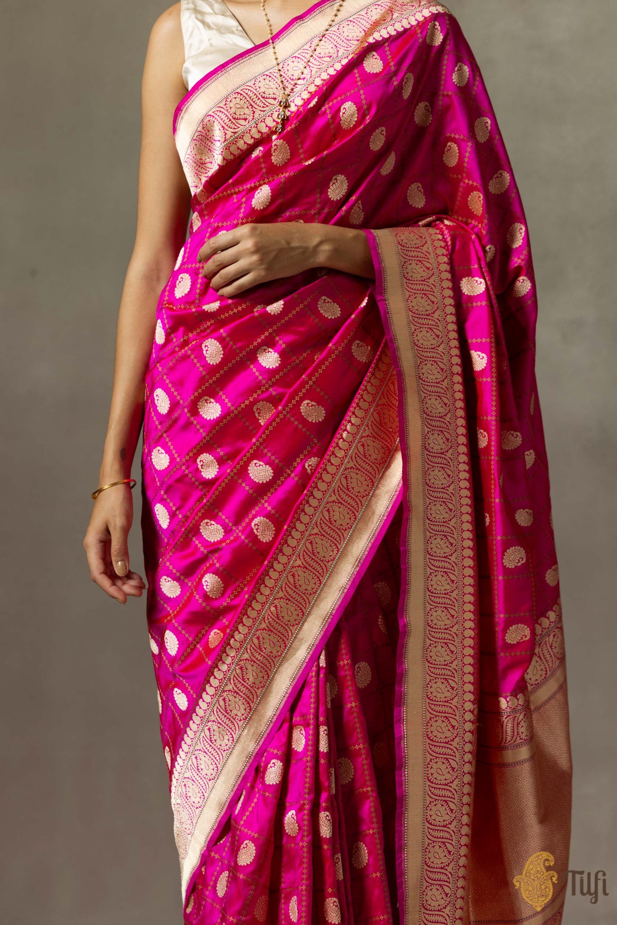 Speciality - A beautiful checkered pattern with paisley motifs handwoven in the kadwa weave, making it a unique and lasting drape.