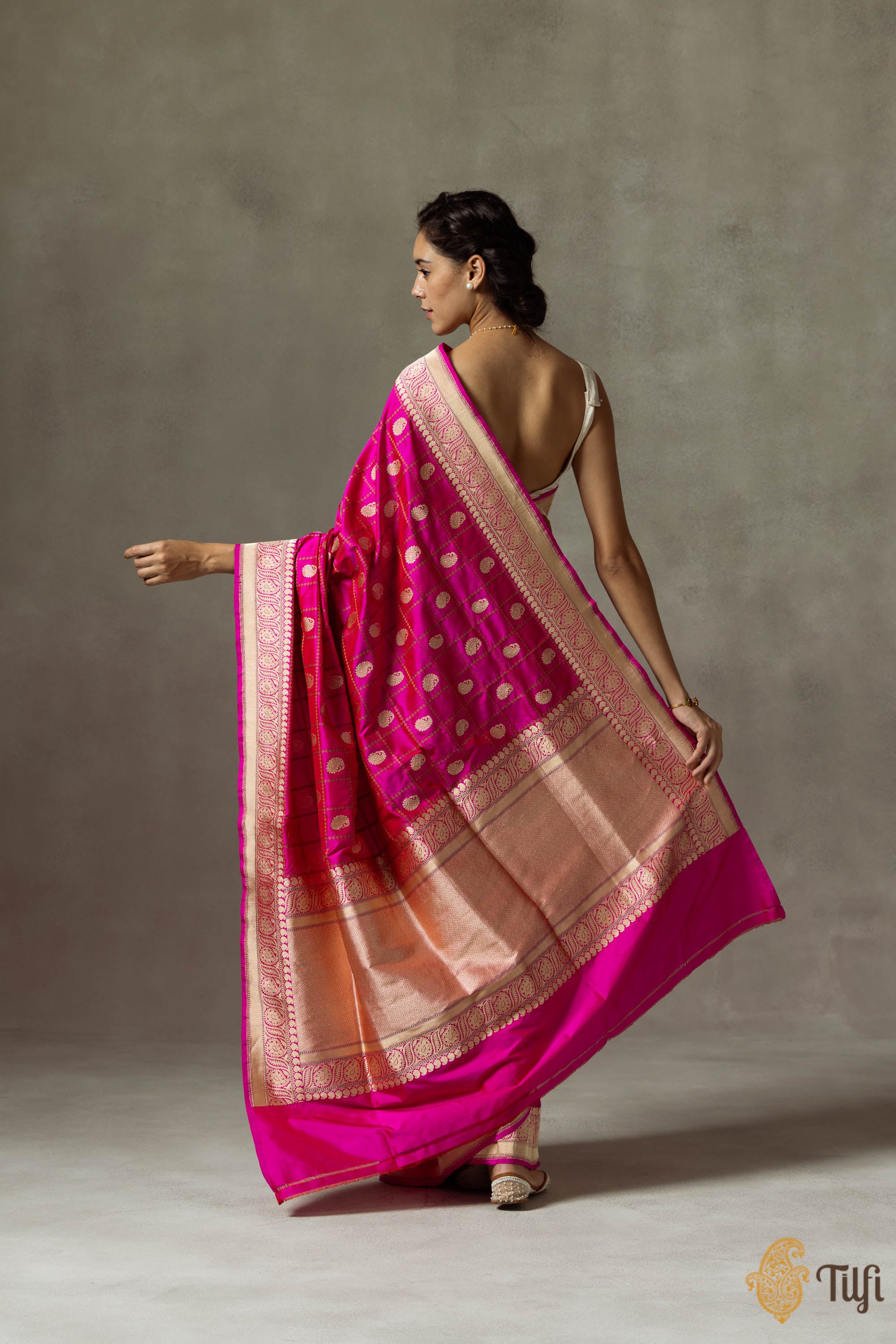 Ragini - A timeless melody in silk. A keepsake. A traditional checkered pattern with paisleys in golden zari. An exquisite weave and a gorgeous colour to make any moment, special.