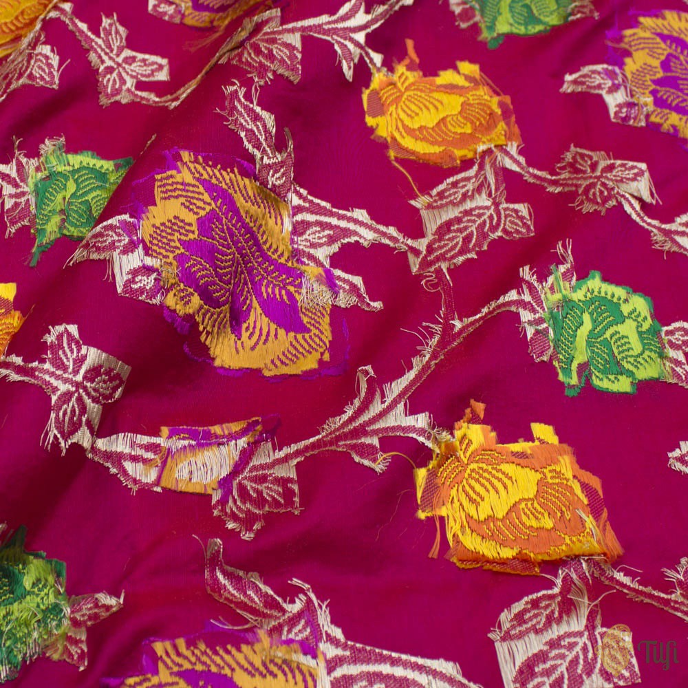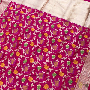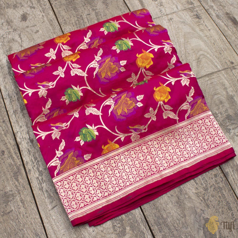 Technique - Classic handwoven Banarasi Meenakari art passed down through generations. Meenakari involves the painstaking addition of supplementary coloured resham threads during the hand-weaving process.