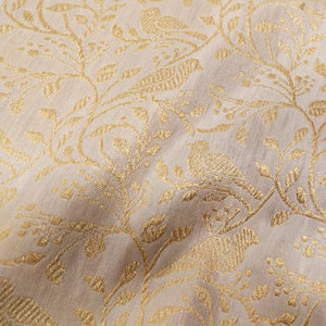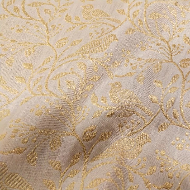Specifications - A luxurious gold zari jaal and incredibly detailed bird motifs. Sheer understated elegance! Width of Fabric - 44 inches