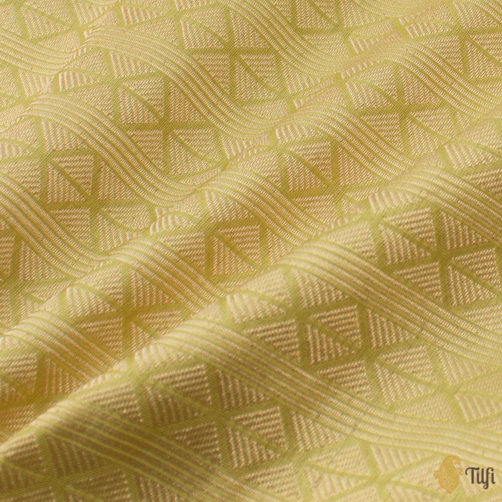 Yards of endearing Banarasi fabric to wrap you in old-world nostalgia! A luxurious silk thaan with a chic yet timeless geometric weave in gold zari.