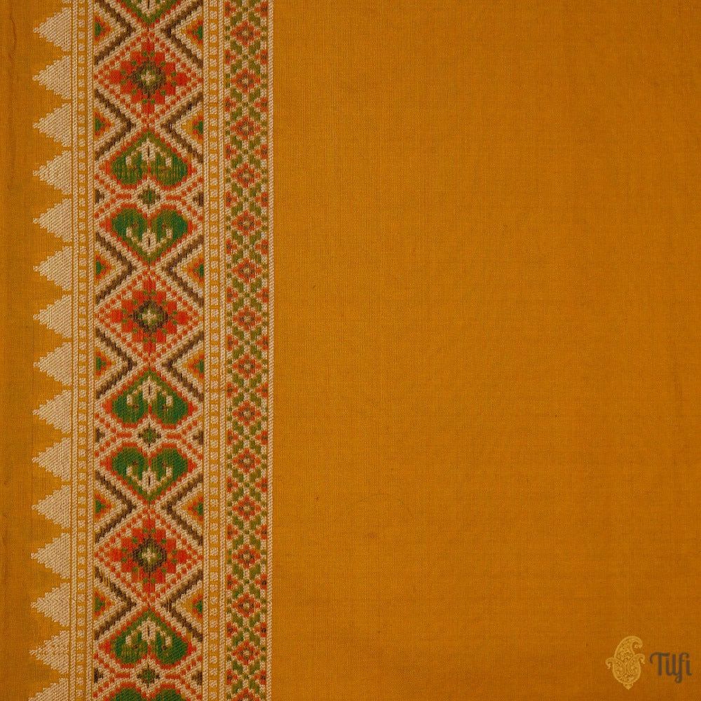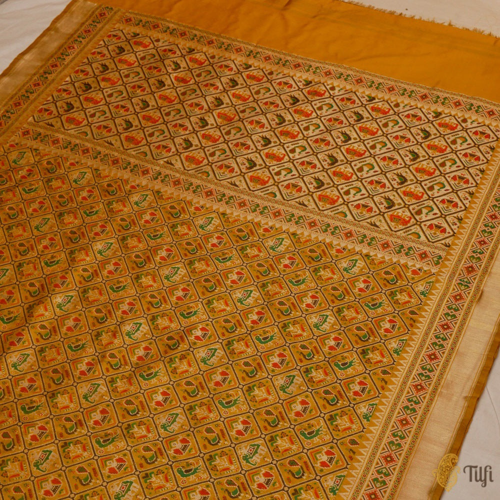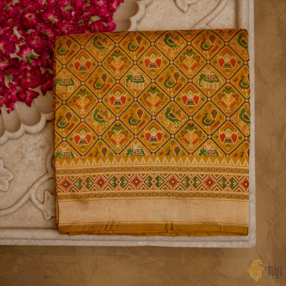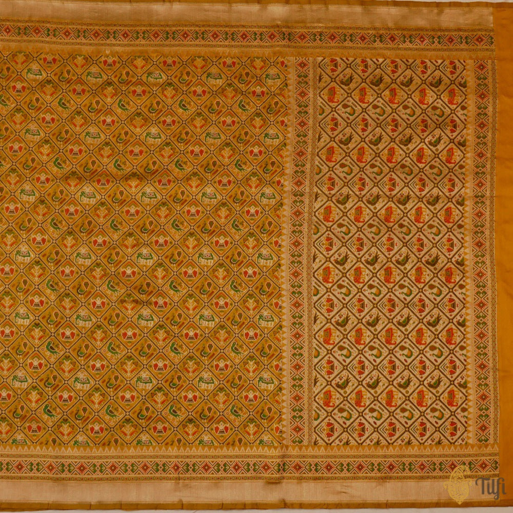 An example of Banarasi ingenuity! The handloom Banarasi Patola is a classic dedicated to the rich weaving tradition of Patan, Gujarat. A celebration of Indian textile arts.