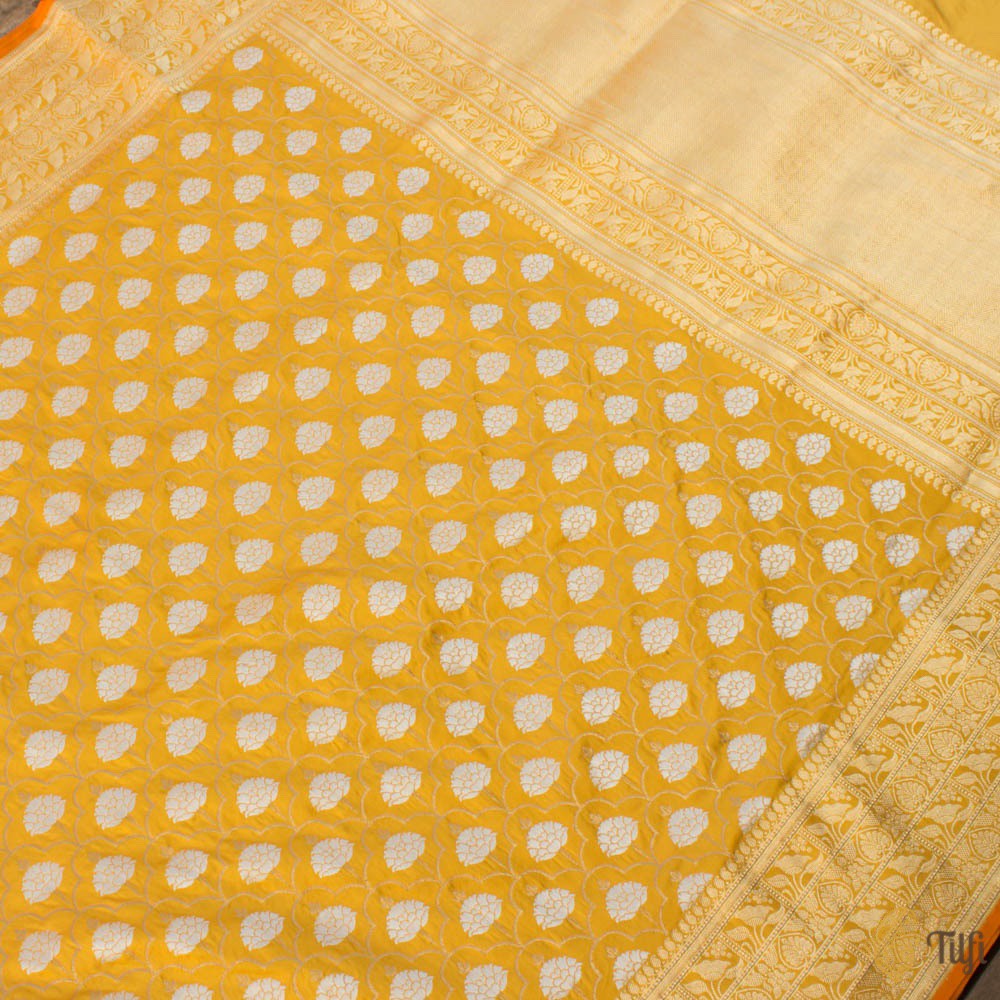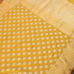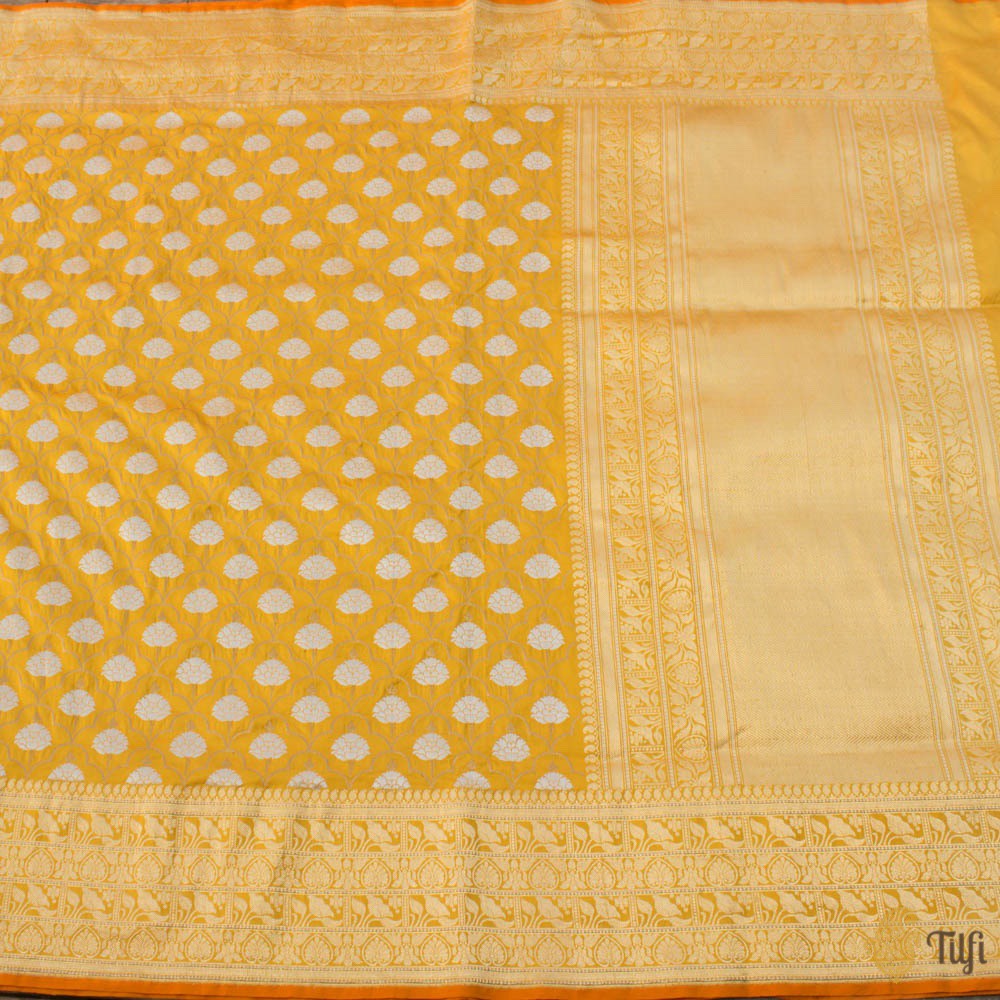 Speciality - Intricate gold and silver zari work across the body of the saree set against a beautiful traditional border and an elaborate blouse piece.